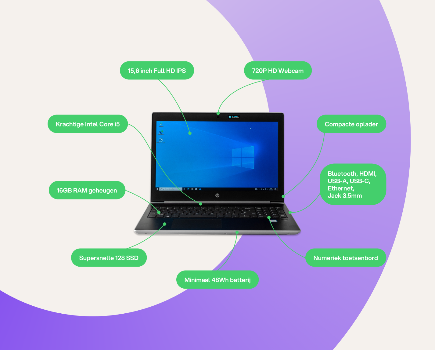 Jij ontvangt een refurbished laptop van hoge kwaliteit, afkomstig van gerenomeerde A-merken zoals HP, Dell of Lenovo. Deze laptops zijn eerder gebruikt in het bedrijfsleven zijn vaak beter en duurzamer dan de standaard consumentenmodellen.